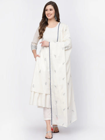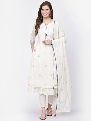2. Off White Thread Work Mal Cotton Kurta Set